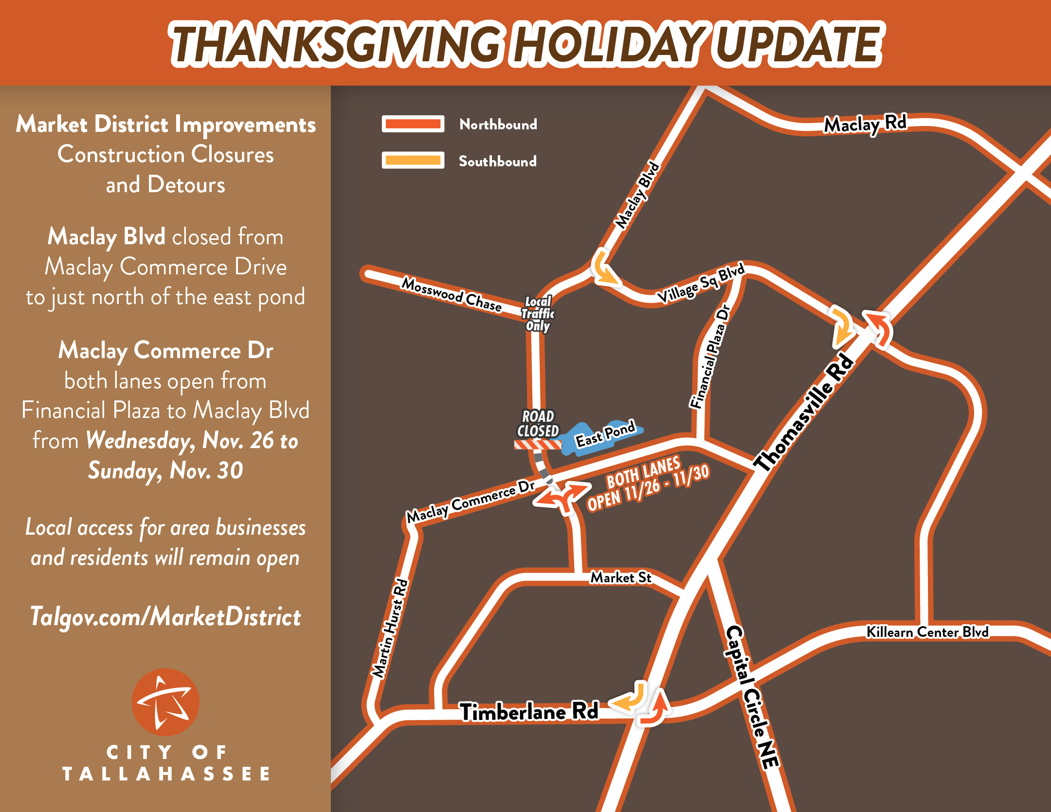 The City of Tallahassee completed the West Stormwater Facility in August 2023. This portion of the project included construction of a roughly 8‐acre wet detention pond that serves as a regional stormwater facility for a large part of the Market District. The facility provides water quality treatment and protection against flooding for the entire 300-acre watershed that drains to it, including the pending roadway improvements on Maclay Boulevard and Maclay Commerce Drive and the future park being implemented by Blueprint.